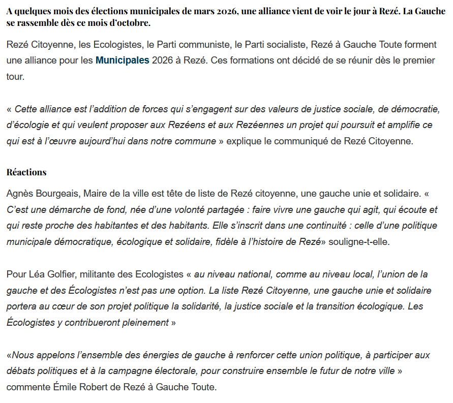 Un article de Hello Gazette revient sur la conférence de presse commune des organisations de gauche à Rezé pour les municipales de l’an prochain.
